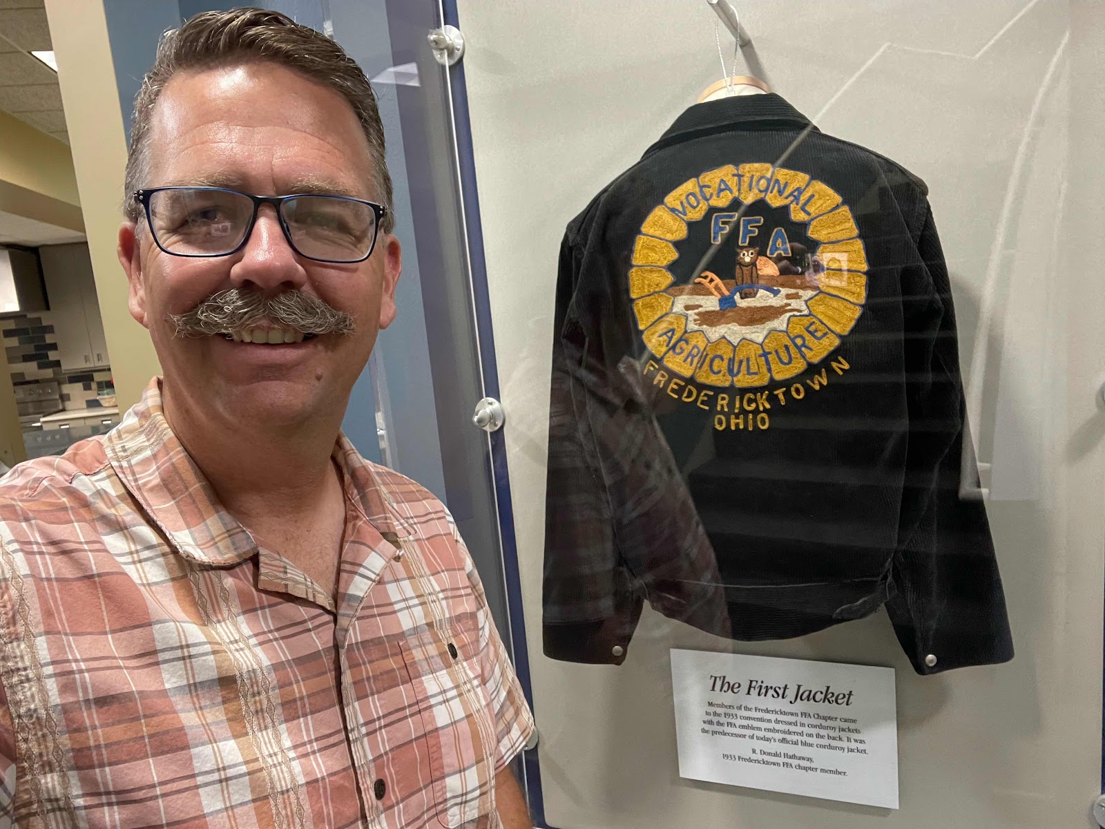 Of course it’s the headquarters of the National FFA Organization. Carlos was still in a meeting when we arrived but their foyer has a nice display of FFA history and memorabilia.