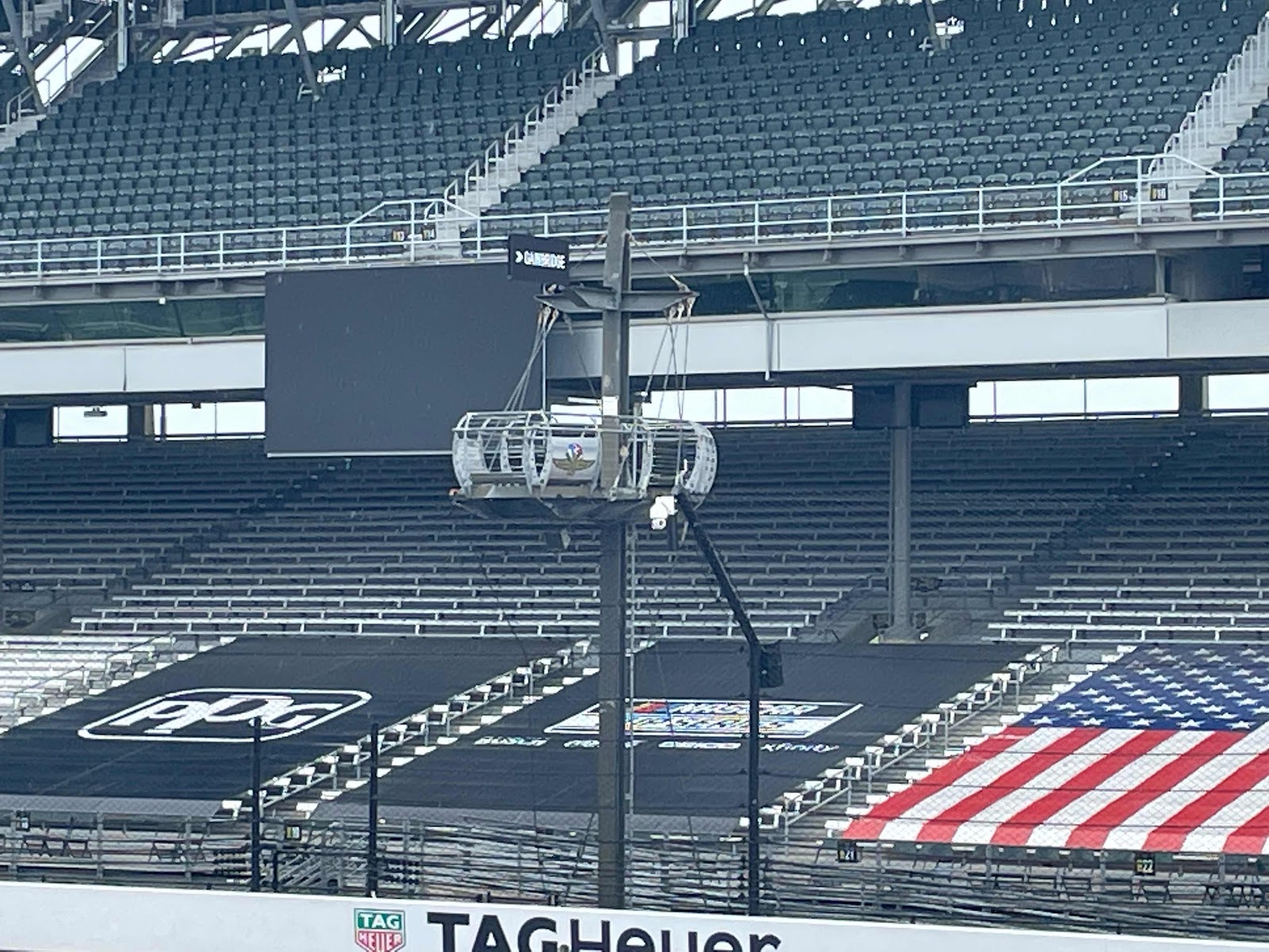 The flag person perch above the Start/Finish line — which is a replica of the crow’s nest of the USS Indianapolis.